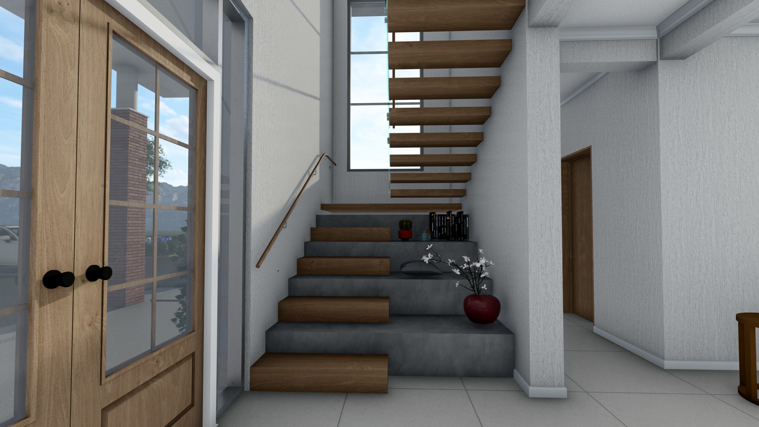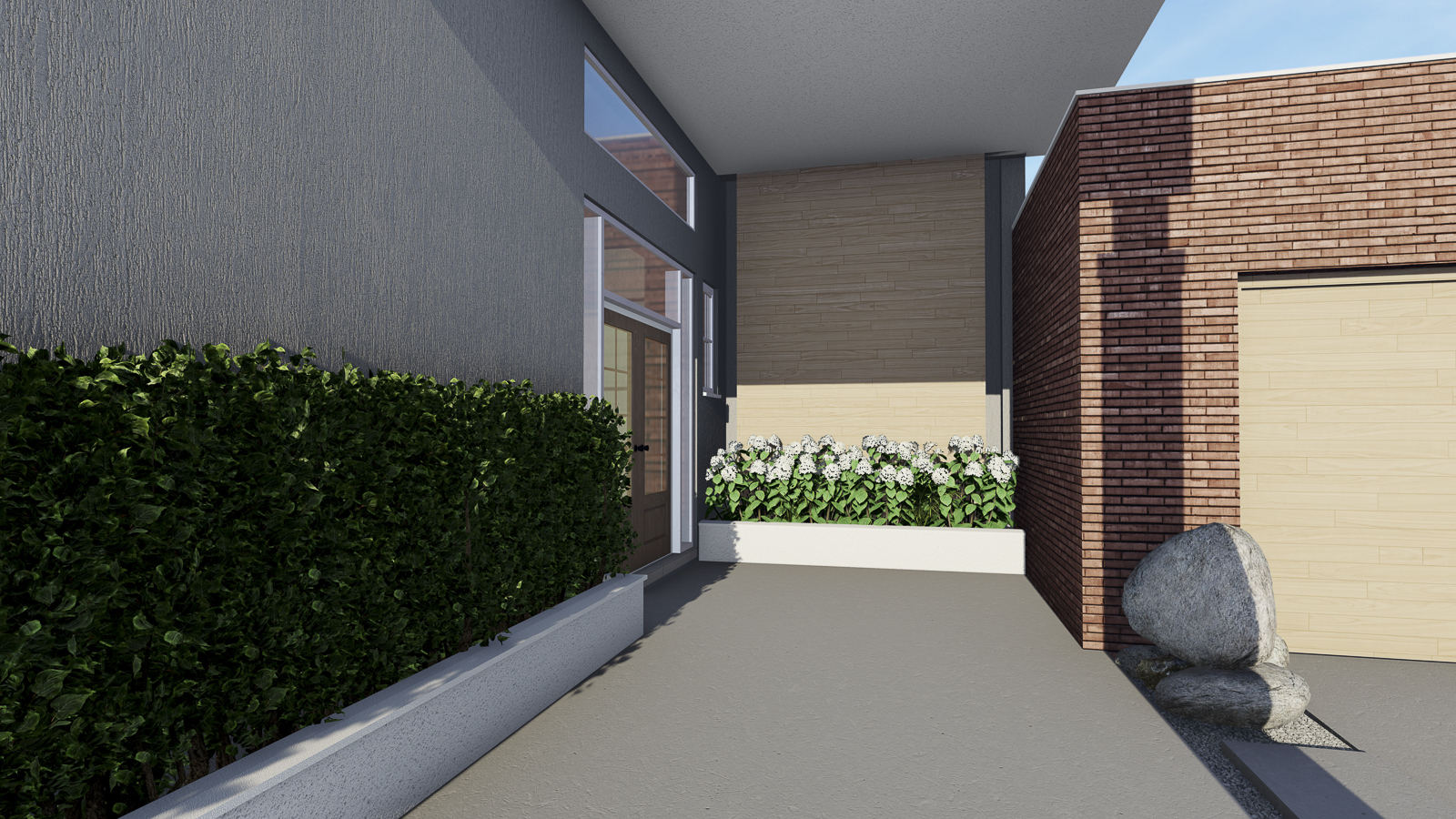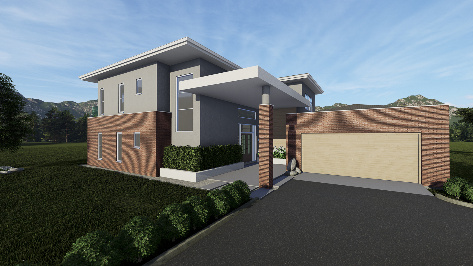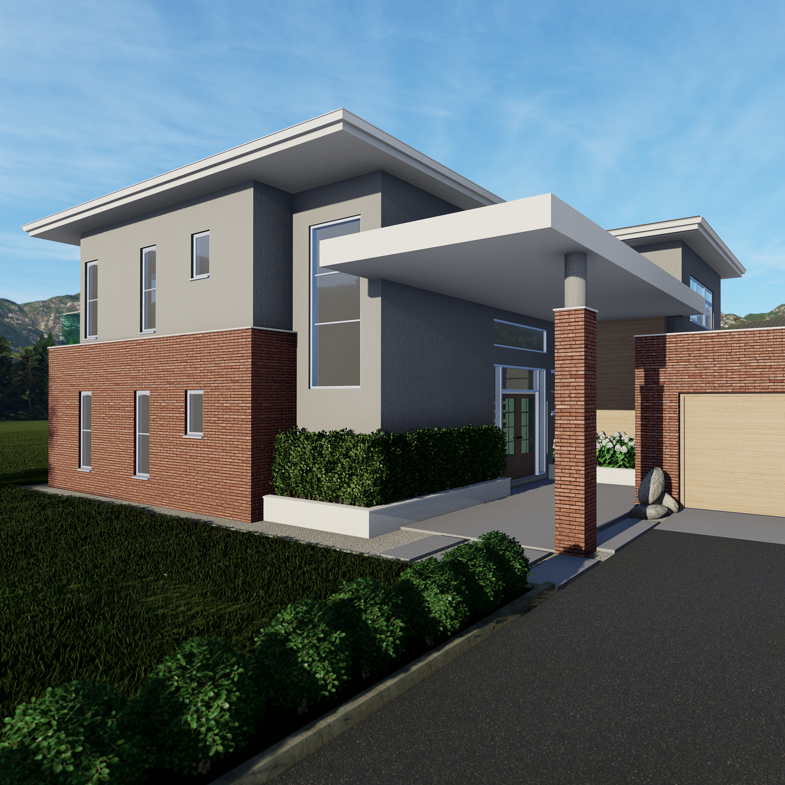 At the heart of the design is a symphony of volumetric articulation — a considered interplay of forms that define how the home is experienced. Each volume has a distinct role: projecting elements frame outdoor spaces, recessed planes create sheltered areas, and vertical forms anchor the composition. This interaction of masses not only expresses the hierarchy of spaces but also sets the stage for a harmonious dialogue between materials, light, and shadow.