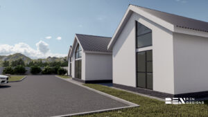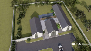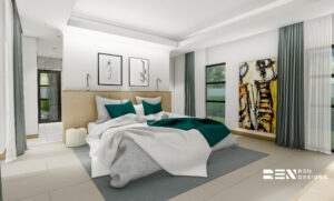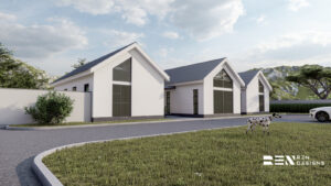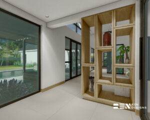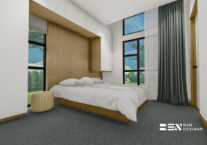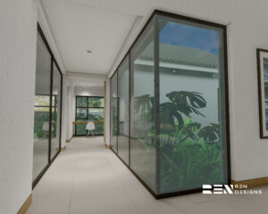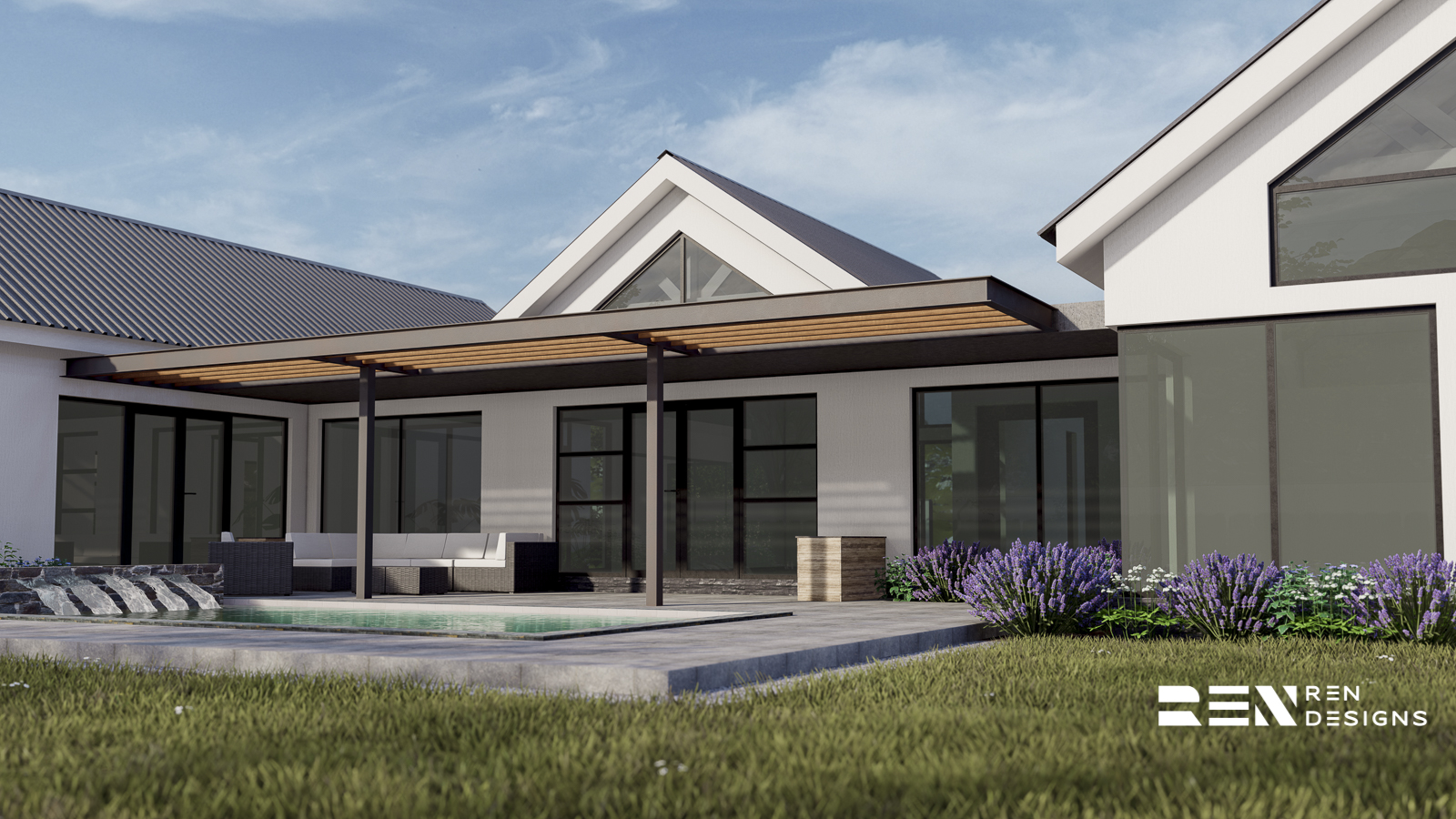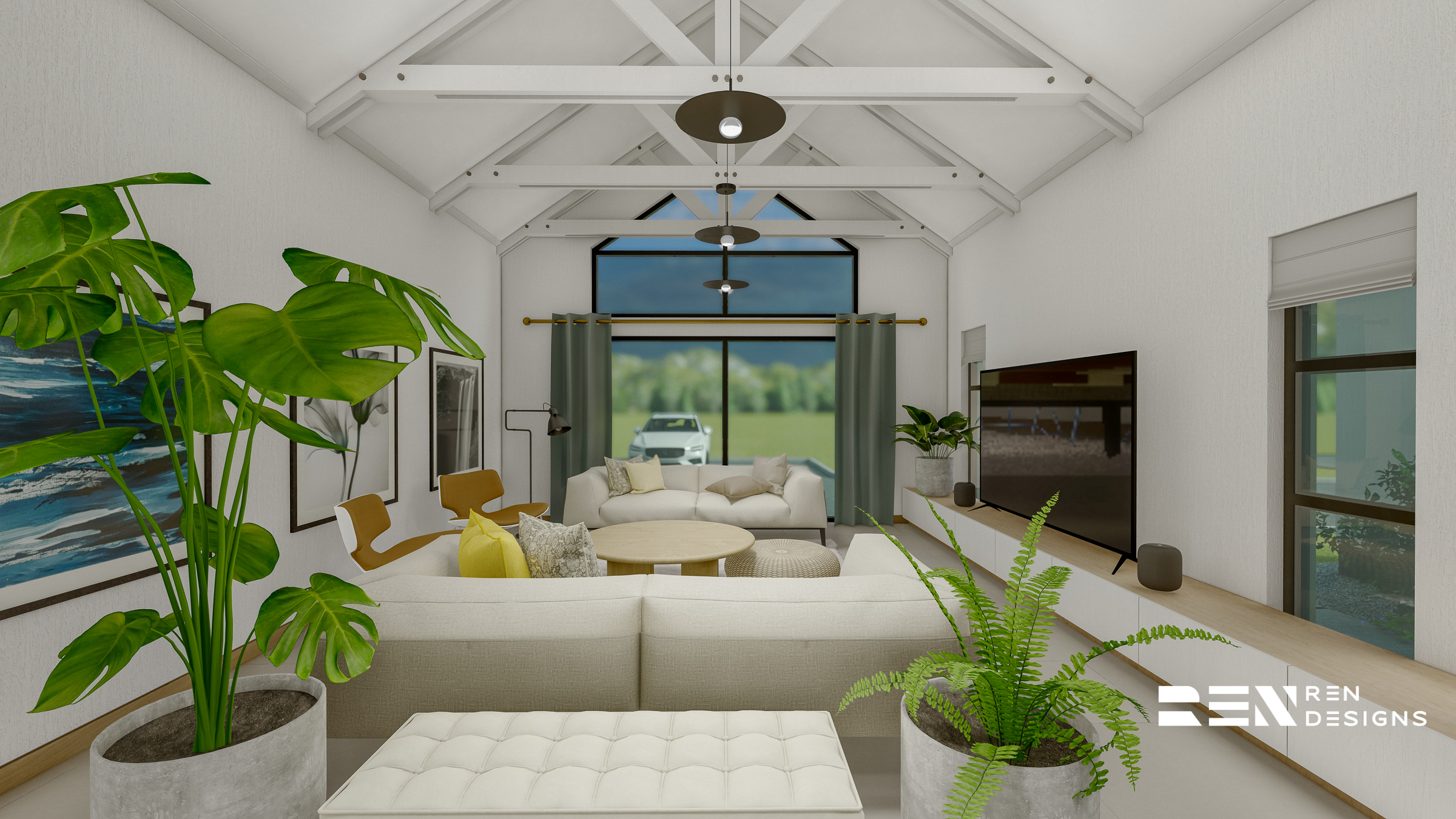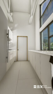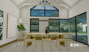 A strong relationship to the outdoors anchors the design. Large expanses of glazing and clerestory windows invite daylight deep into the interiors, frame views of the surrounding landscape, and enhance natural ventilation. This seamless indoor-outdoor connection establishes an atmosphere of comfort, openness, and relaxation throughout the home.