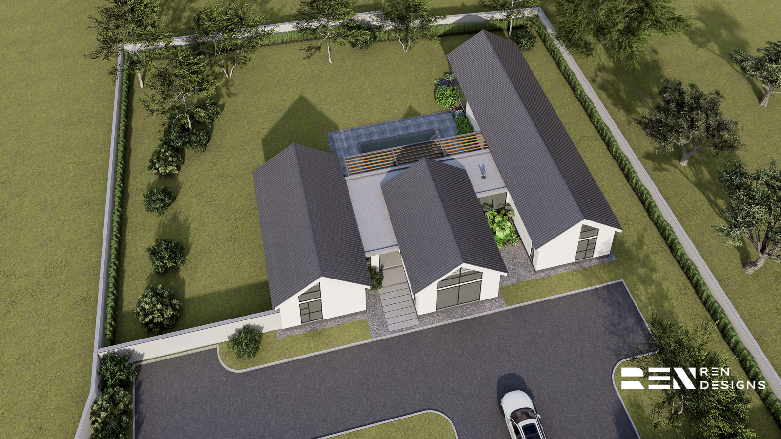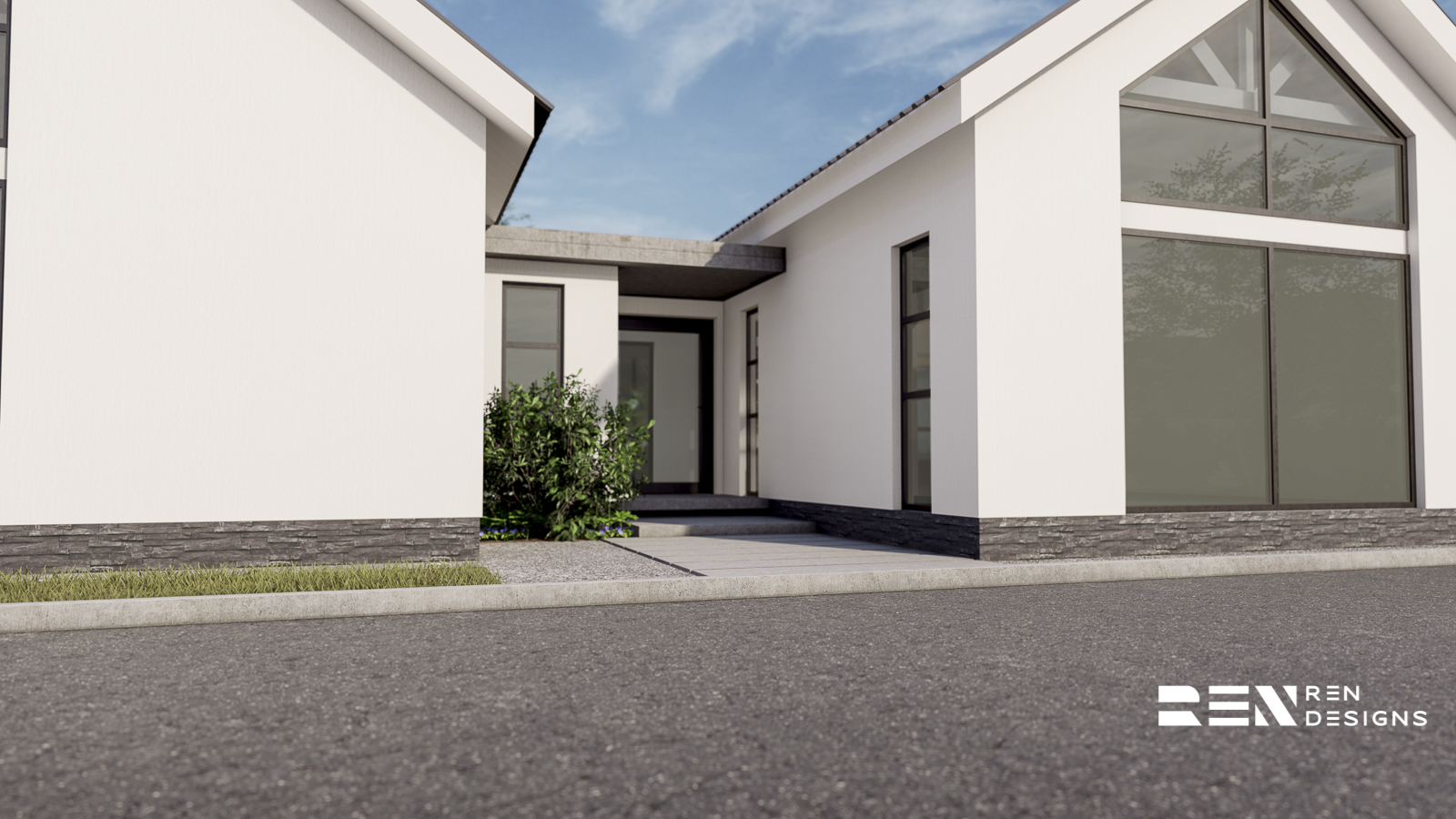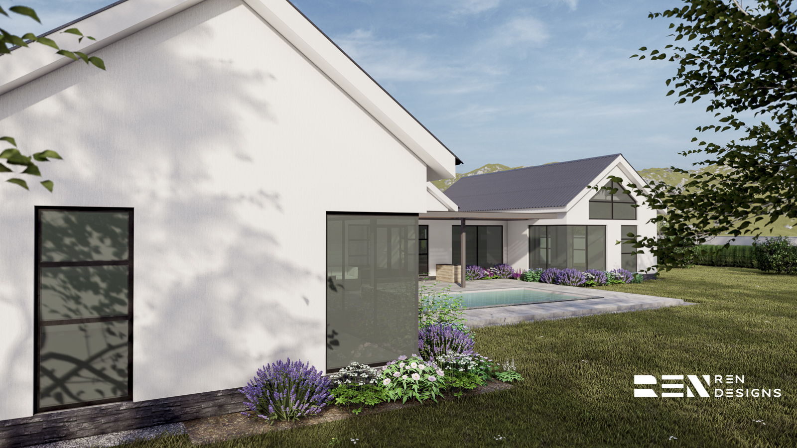 House Milward is a contemporary reinterpretation of the farmhouse, composed of three distinct gabled volumes carefully ordered by function and use. These volumes are linked by a sequence of flat-roofed pathways that preserve privacy while ensuring fluid movement between spaces.