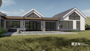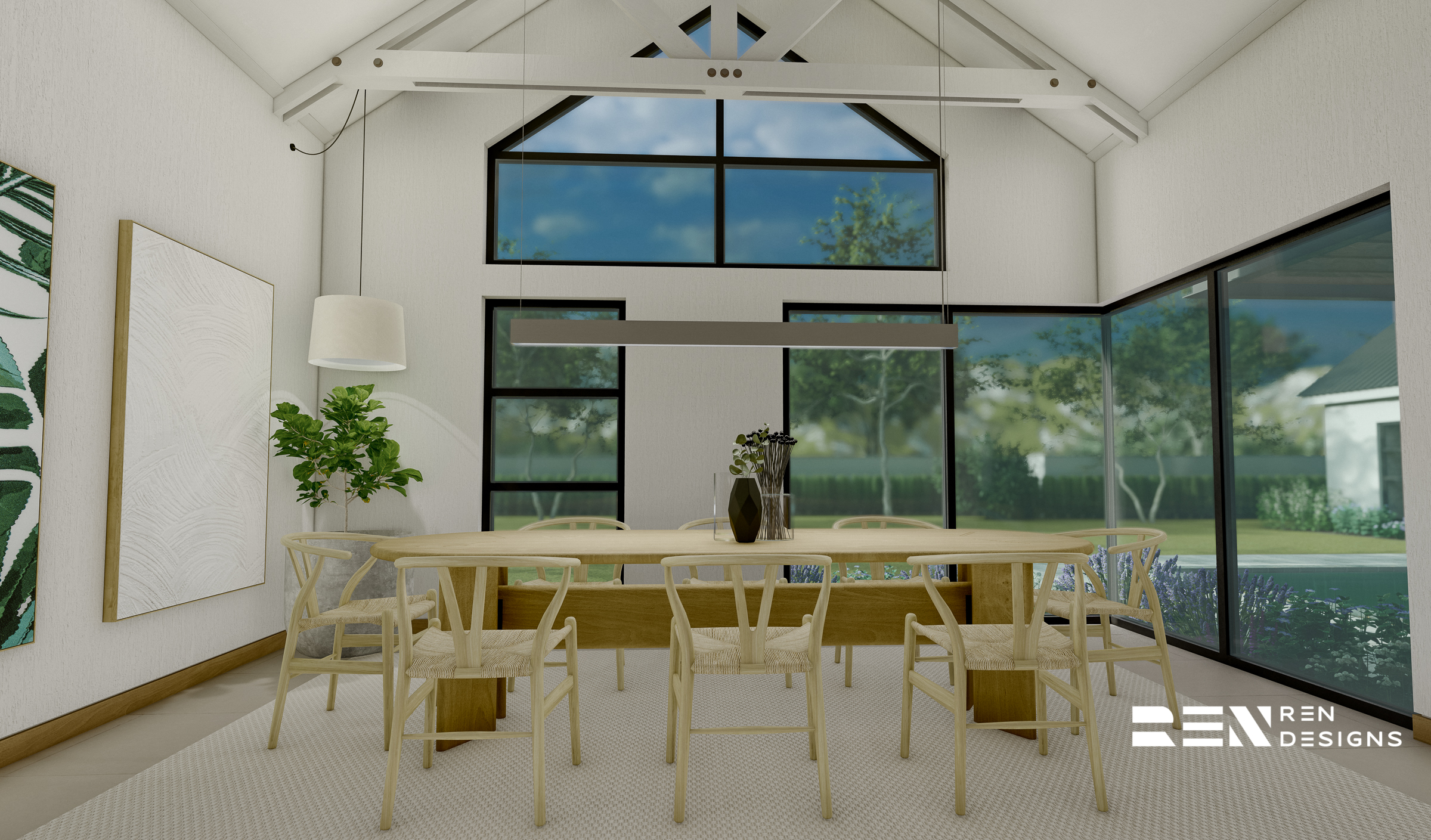 Rather than relying on rustic tropes like stone cladding or barn doors, the design draws on the essence of a country farmhouse through its gable roofs, slim profile, and lofty interiors with exposed trusses in select rooms. Clean lines, elegant proportions, and a restrained material palette give the home a modern refinement while retaining its rural spirit.